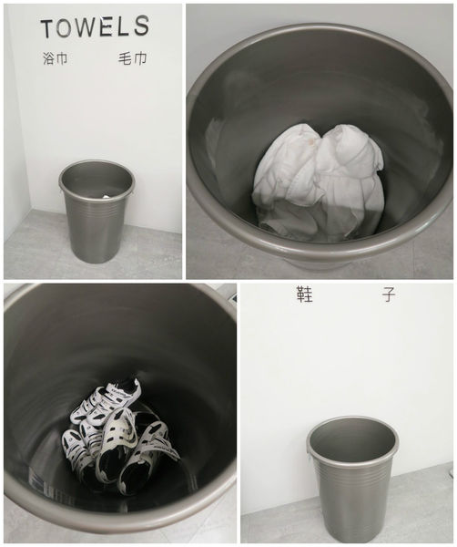 洗完澡 使用過後的浴巾、拳套、卡鞋就放在桶子裡就可以了~