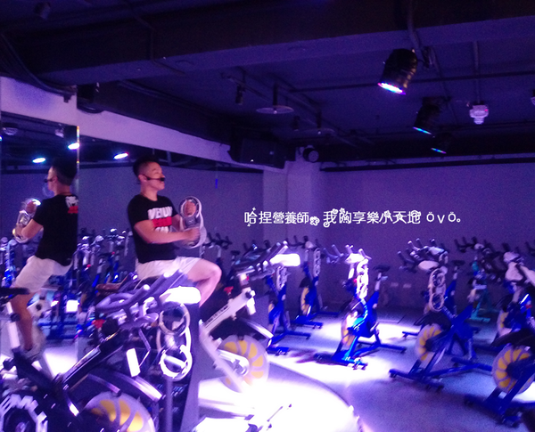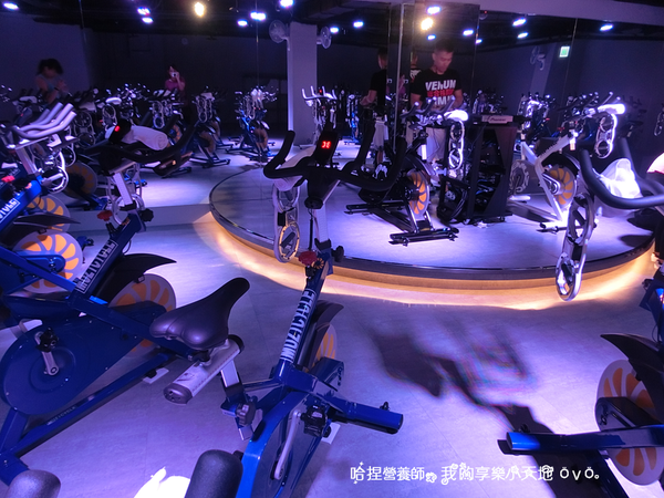 一台台飛輪環繞著舞台,上課的教練就像DJ撥放著音樂邊騎著飛輪,超炫麗的!!
