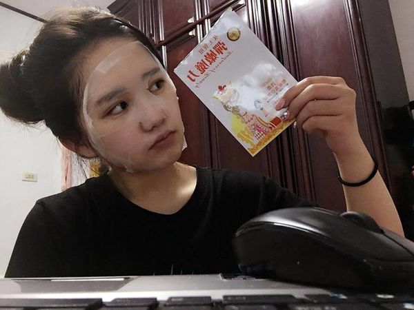 讓小細紋不要出現,妮莫是個愛敷面膜到連用電腦都要敷的女孩