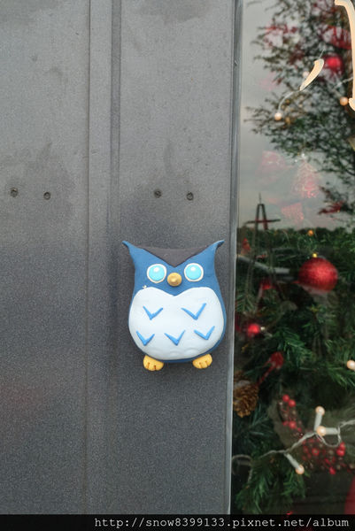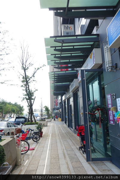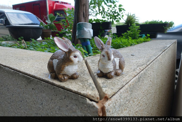 一旁人行道上的人行樹有可愛的小兔子裝飾