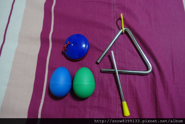 一和小禮物,裡面有三種樂器,分別有響板、蛋沙鈴及三角鐵,
