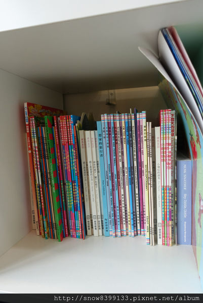 書櫃裡放了許多童書,可以在等待上課前閱讀