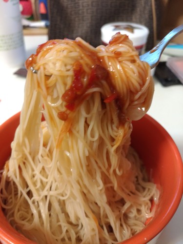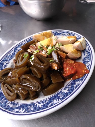 中午煮麵線拌上 苦茶油及香甜辣椒醬風味十足