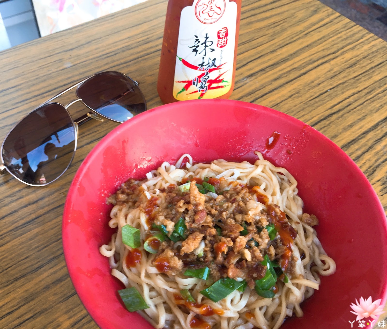 中餐都是以外食居多,而只要加一小瓢在陽春麵,即可享有微辣乾拌麵的口味