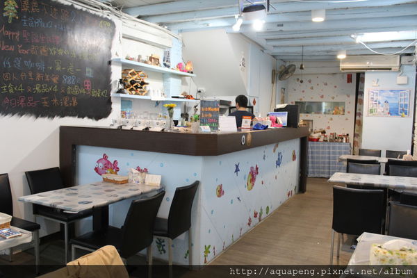 裝潢上選用了許多海洋藍色風格,以及貝殼、海星、船等等裝飾物
