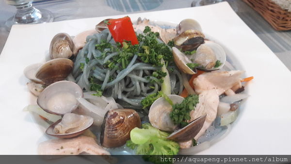▲滿特別的義大利麵條沾滿了醬汁,不過料卻都很乾淨喔!