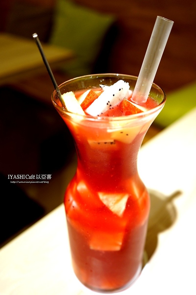 水果茶口感偏酸,裡面有著滿滿的水果切丁,