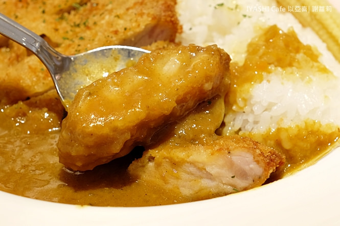 跟剛才的炸雞一樣,咖哩醬都是屬於偏日式和風的味道,差別在於只是換了主菜,是說豬排的顏色看起來好美,感覺主廚在火候的拿捏上,也是很有經驗的呢!