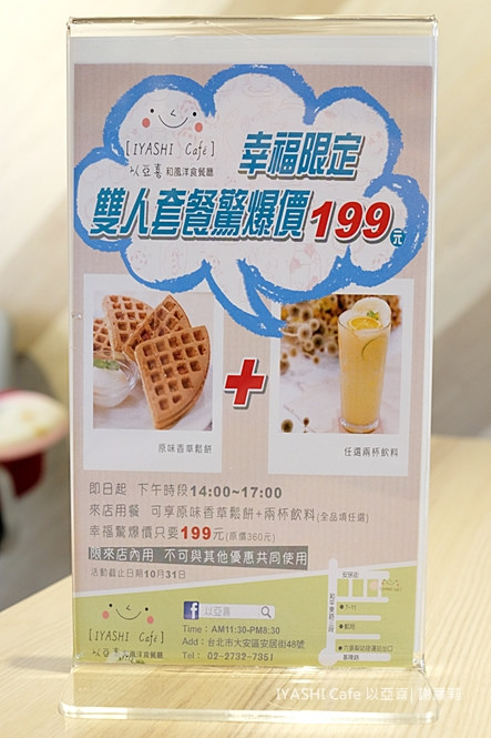 窩藏在隱密巷弄內的小清新,我想是 IYASHI Cafe(以亞喜) 最貼切的形容詞吧!