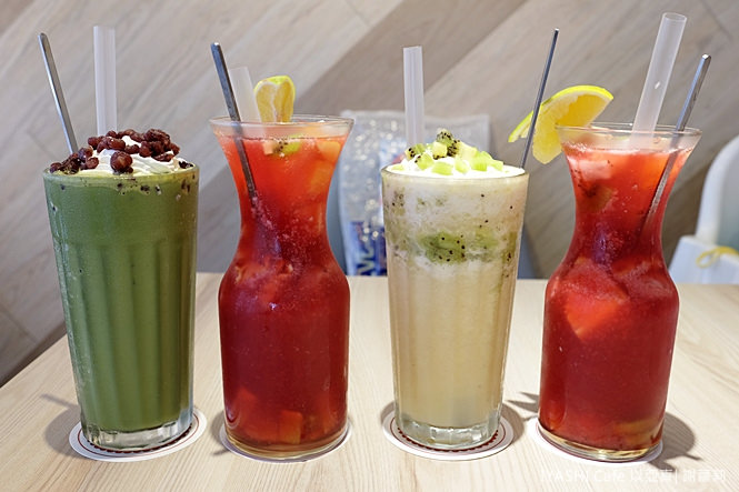 我們各點了一杯冰飲,一字排開,繽紛顏色感覺好美!雖然說最近天氣轉冷,但沁涼滋味還是令人覺得好過癮:)