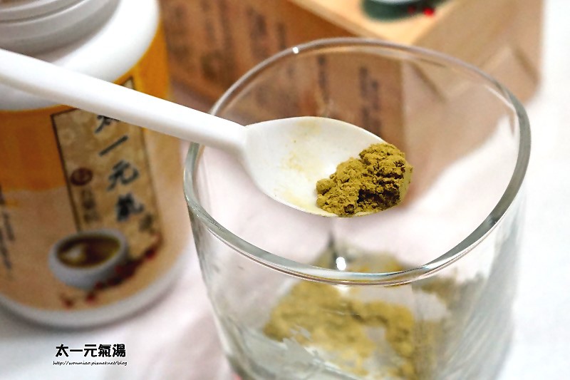 太一元氣湯外觀是帶點暗綠色的粉狀物。