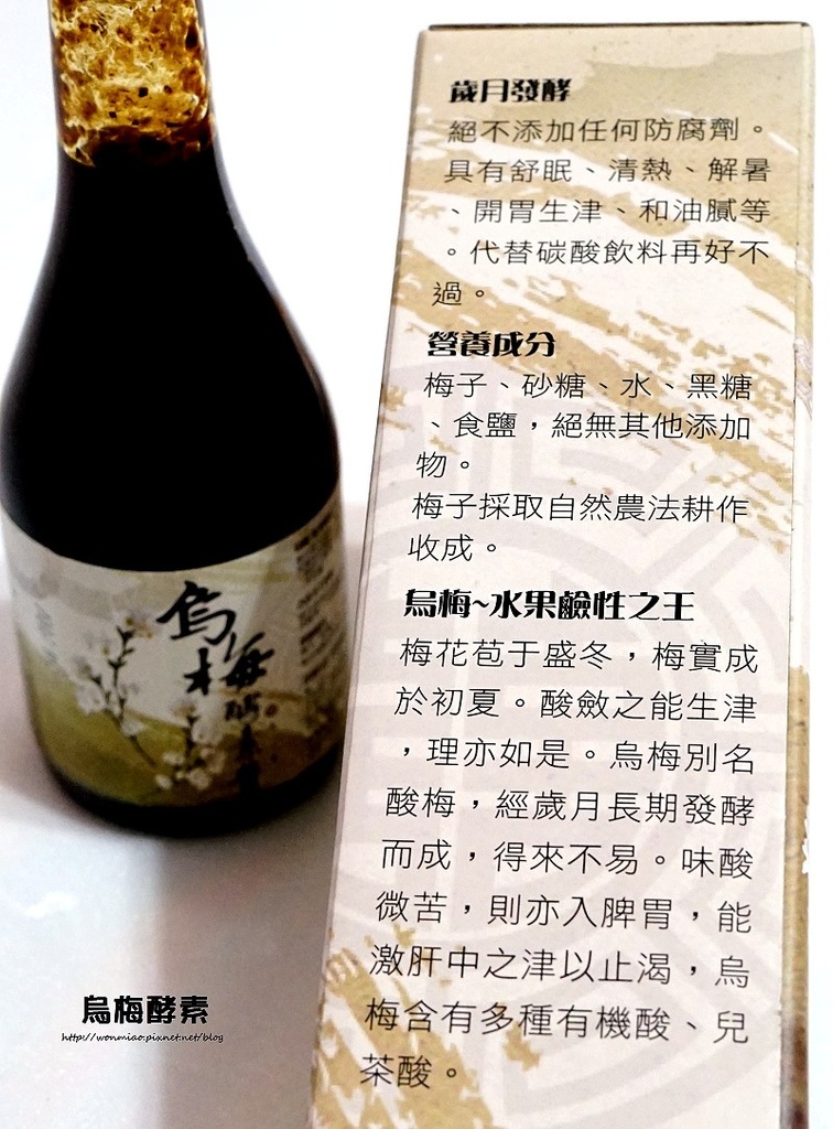 烏梅酵素選用有機栽培及認證的梅子,加入砂糖,黑糖,水,食鹽,