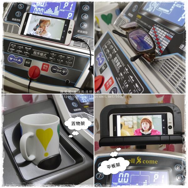 一邊放水杯,一邊還可以放雜物,就是不要讓你有藉口下跑步機嘛!!!