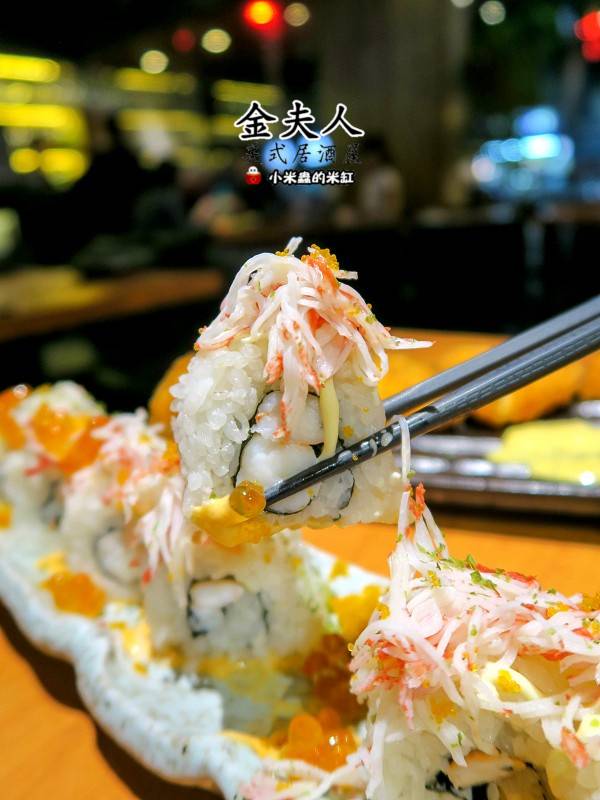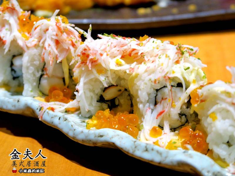 捲上了蟹肉棒,灑上了滿滿的蟹肉絲、鮭魚卵與蝦卵