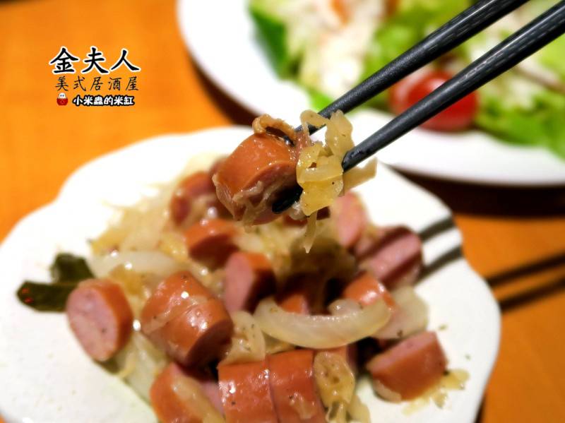 香腸煙燻多汁的口感搭上洋蔥與酸菜