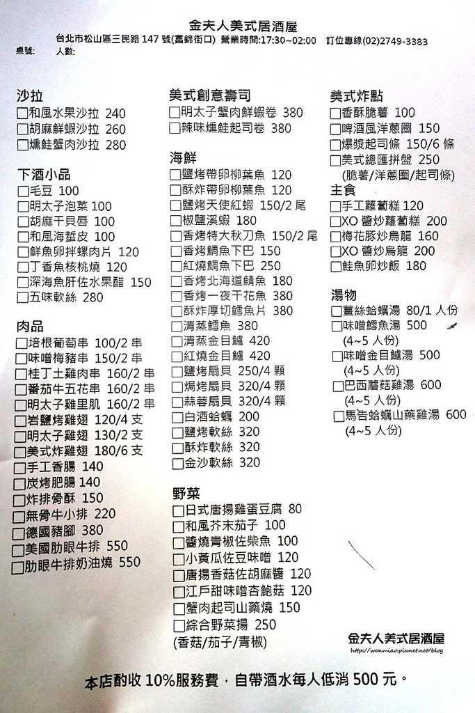 這天來到位於松山區三民路與富錦街口的金夫人居酒屋,