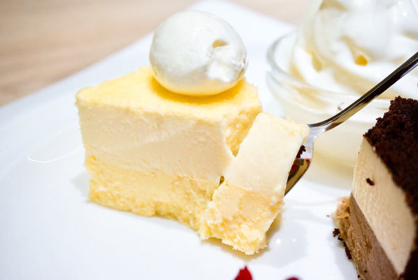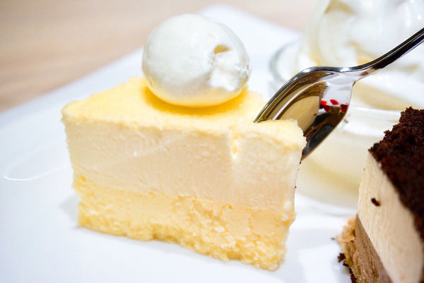 下層鬆軟的口感介於一般輕乳酪與重乳酪之間