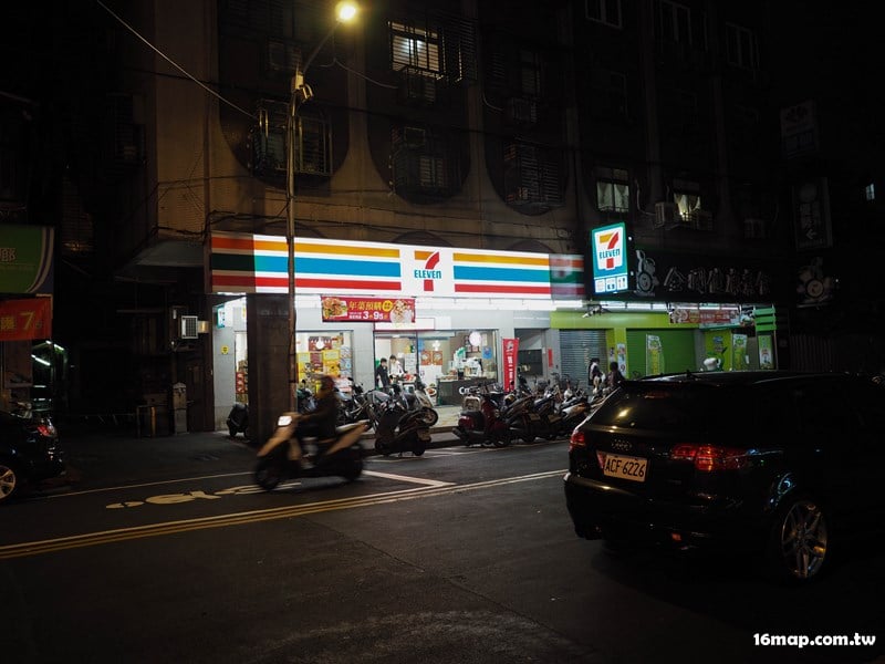 洛碁大飯店松山館大門正對面就是7-11,左手邊是豆漿店還有鹽酥雞、雞排~
