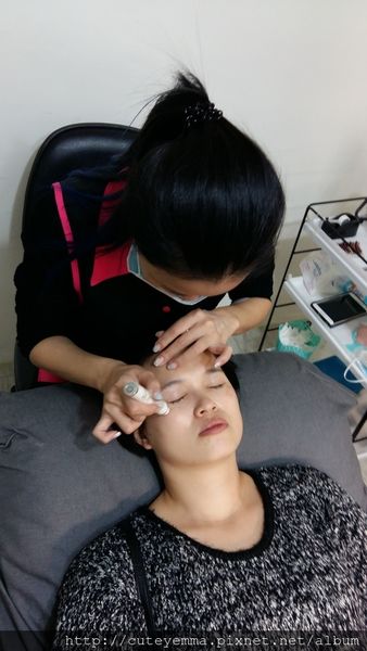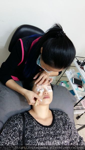 老師正用他精湛的技術使用不同長度的睫毛來嫁接,