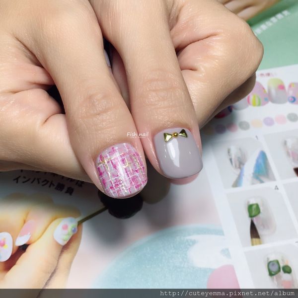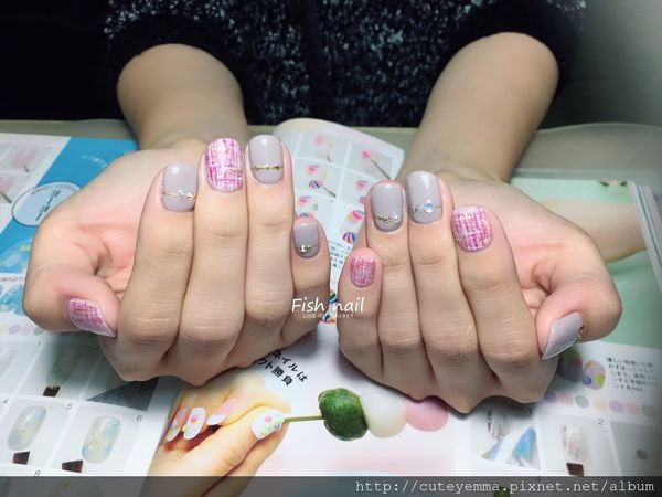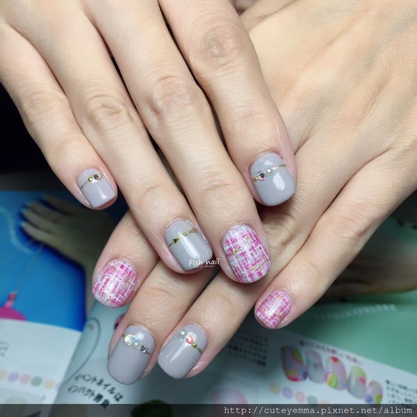 美甲老師幫我設計了一個小香風毛妮彩繪X珍珠鑽飾