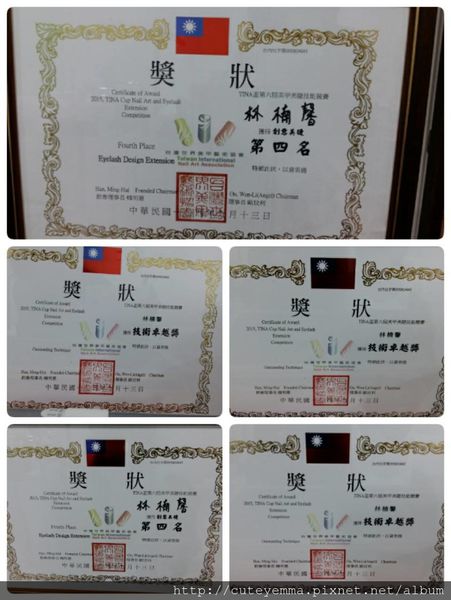 (1.)榮獲 2015 TINA國際美甲美睫競賽 技術卓越獎.