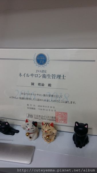 前面提到美甲老師的日本JNA美甲衛生管理士檢定合格證書