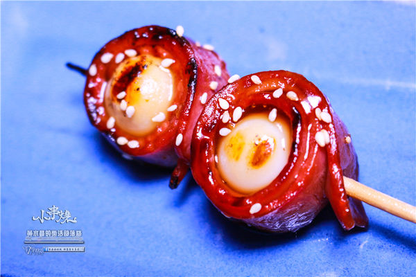 很特別的培根捲鳥蛋,厚實的培根片裏住了小鳥蛋,