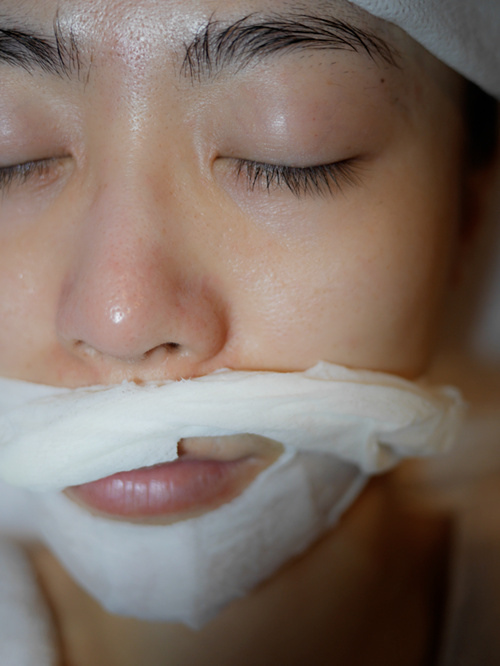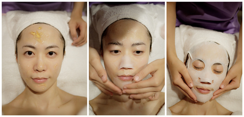 換好了美容衣之後,就要開始做臉部spa囉~一開始美容師先幫我清潔臉部,按摩的力道很剛好,清潔完畢後就開始去角質,去一半我的鼻子跟唇周就開始泛紅了> <...沒辦法!皮太薄加上皮膚比較敏感,很容易有這樣的情況,不過美容師都有把我臉部的狀況反應讓我知道,並且不時會詢問我的感受,很貼心。