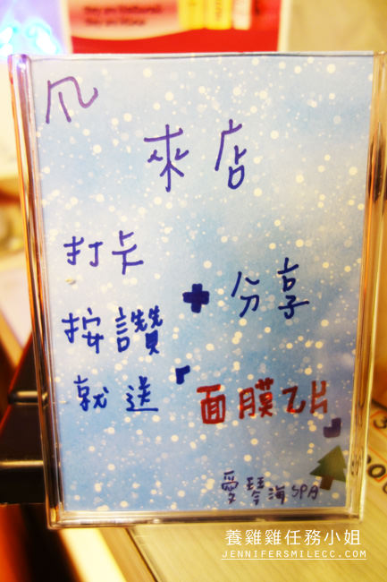 店裡面小活動也不少,像這個打卡按讚送面膜滿好康的