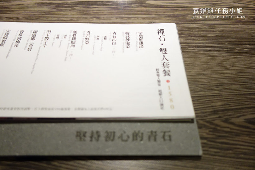 青石代的菜單配色和整體裝潢配色相當搭,看起來很精緻