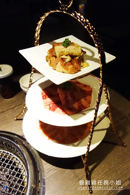 回到座位我們的肉肉來囉~竟然用英式下午茶的架子擺著,頓時覺得好高級好優雅喔!