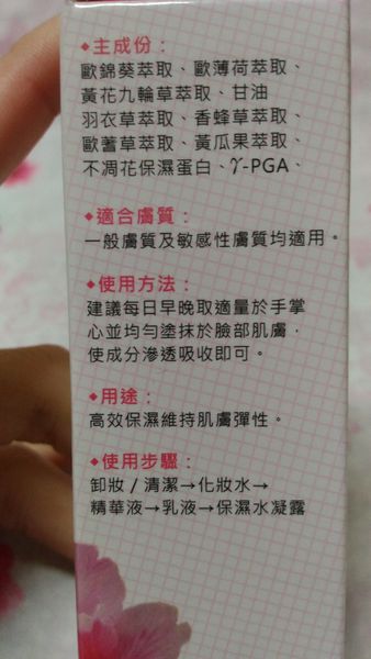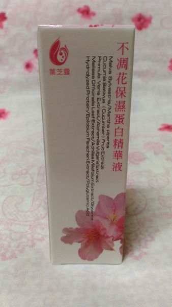 不凋花保濕蛋白精華液的紙盒外包裝。
