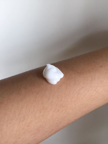 質地屬於輕柔的乳狀,推開的乳液同時,明顯可感受到延展性非常好,大約10元硬幣的量,即可塗抹整隻手臂
