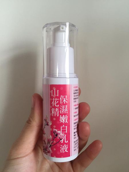 擁有粉嫩感外包裝的「山花精保濕嫩白乳液」