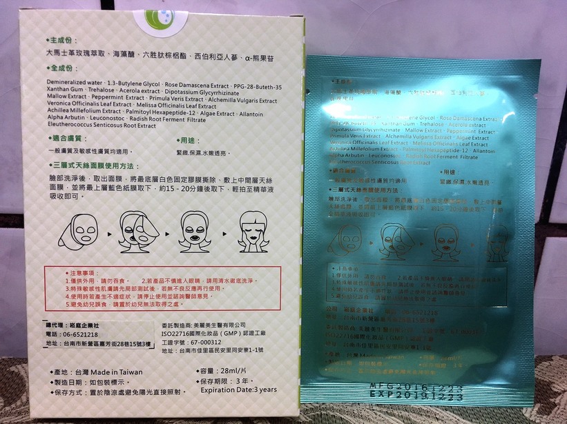 臉部洗淨後,取出面膜,將最底層白色固定膠膜撕除