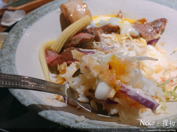 溫泉蛋真的是一大亮點~每道料理有了它就是在往上加分(個人愛),但是如果不敢吃生蛋的人可能要特別問一下有沒有半熟蛋唷