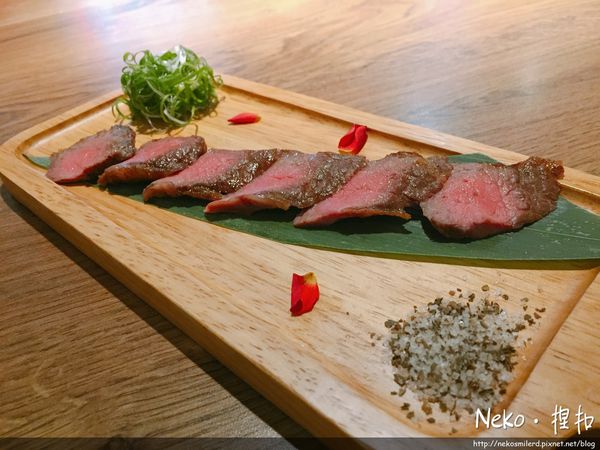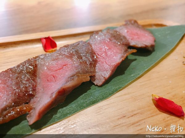 安格斯牛小排的擺盤好美阿~還有玫瑰花瓣點綴,一樣烤的粉嫩粉嫩~~~我們一致覺得比丼飯裡面的牛小排好吃耶!應該是厚度比較足,吃起來更有多汁的口感