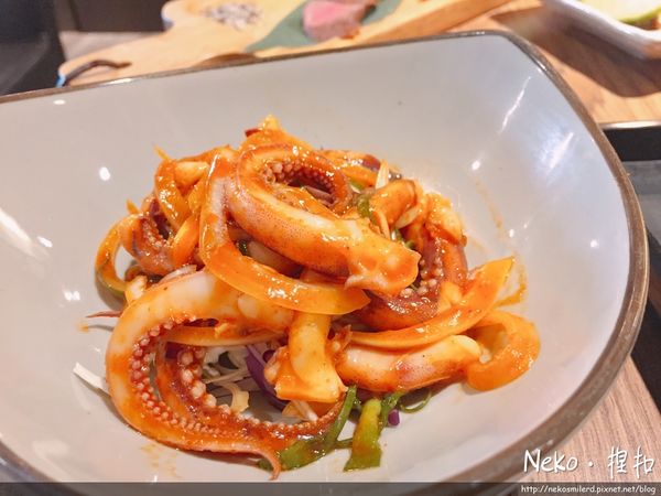 這也是微辣~再帶一點洋蔥的辛嗆感,魷魚鮮甜有彈性~也不會很難咬