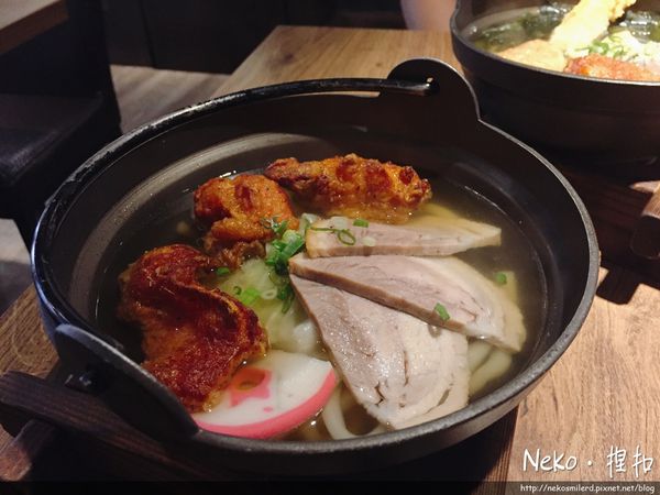 這次的兩款拉麵的湯頭是用柴魚,困部還有小魚乾一起去熬煮的,和對於一般拉麵的死鹹印象完全不一樣,是呈現食材熬煮出來的自然清甜,清爽又無負擔,烏龍麵條頗有彈性,唐揚雞很好吃肉質很嫩但是豬肉片偏乾,幸好是薄片,如果可以再嫩一點就更完美囉!