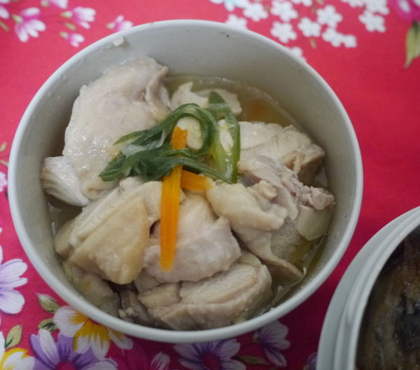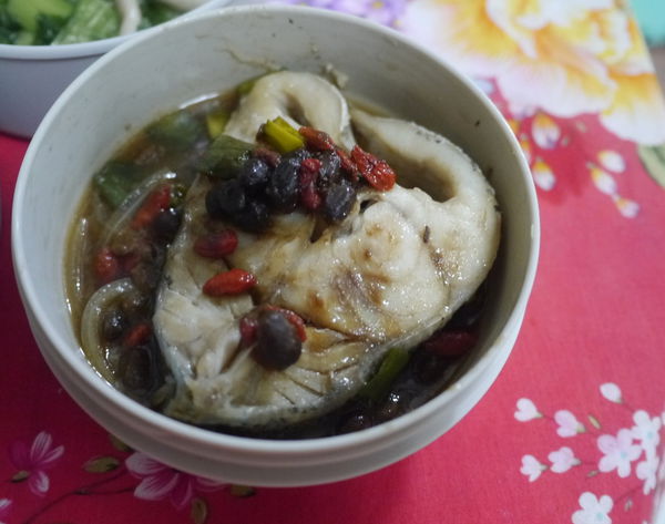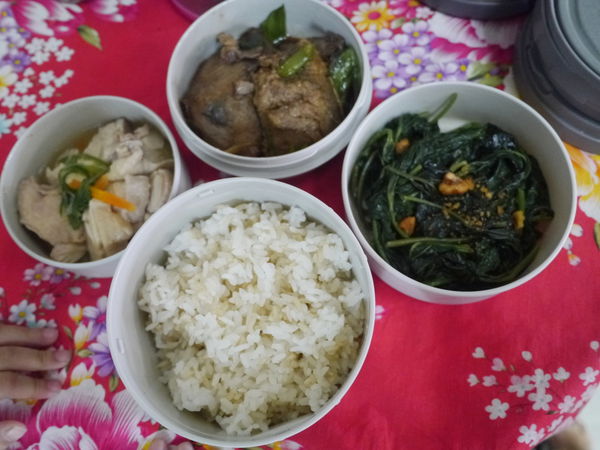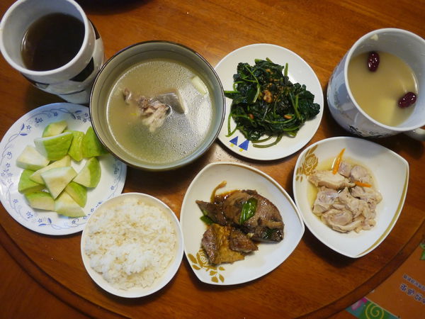 中餐:糙米飯、醬燒海魚、蔥油雞、堅果地瓜葉、魚湯