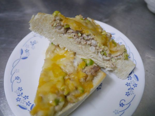 這是洋蔥豬肉起司焗烤厚片,上面料還蠻多的,不錯吃