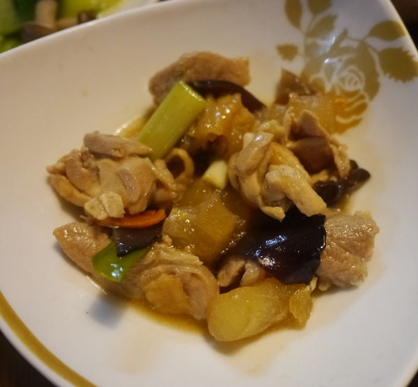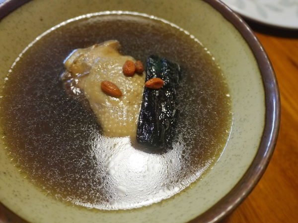 八珍雞湯,蠻香醇的,算是清甜,帶點杜仲跟枸杞,更有層次了
