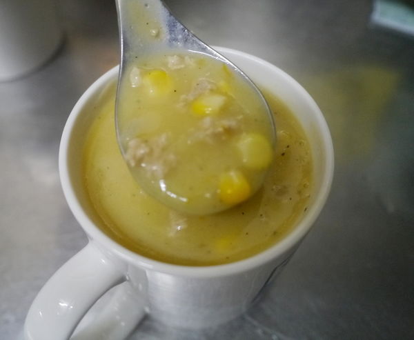 濃湯,真的很夠本,(因為一份也不便宜當然要真材實料)裡面有滿滿的料,玉米、洋蔥、肉末,反正真的很像家常菜