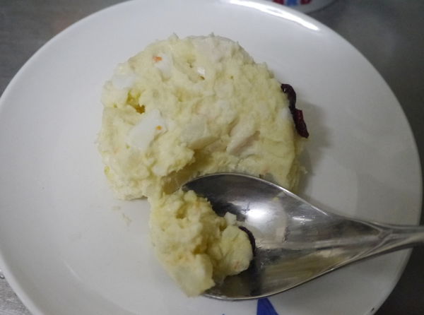馬鈴薯沙拉,上面還有蔓越莓,好營養阿,裡面還含有一些蛋白及配料,這真的很用心呢!