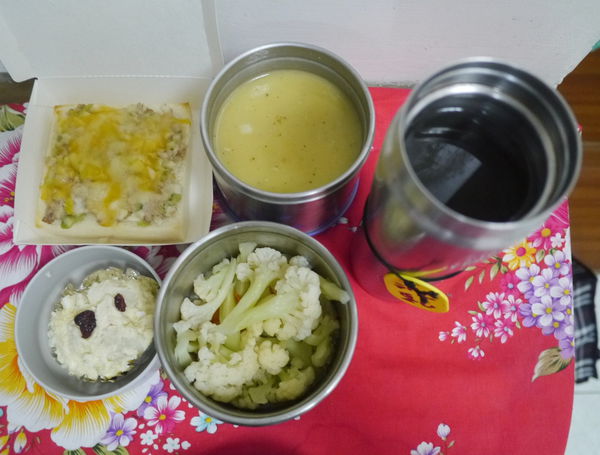 優點:圖個方便、不用自己煮、不用熱、不用洗,吃完就收進去,眼不見為淨,等下一餐的到來,一打一也沒問題