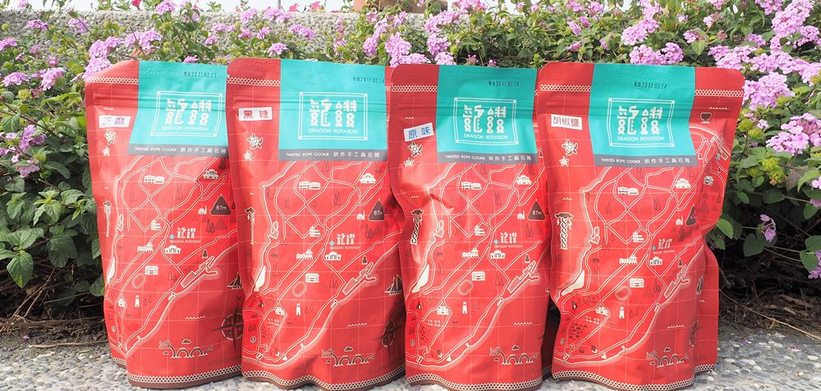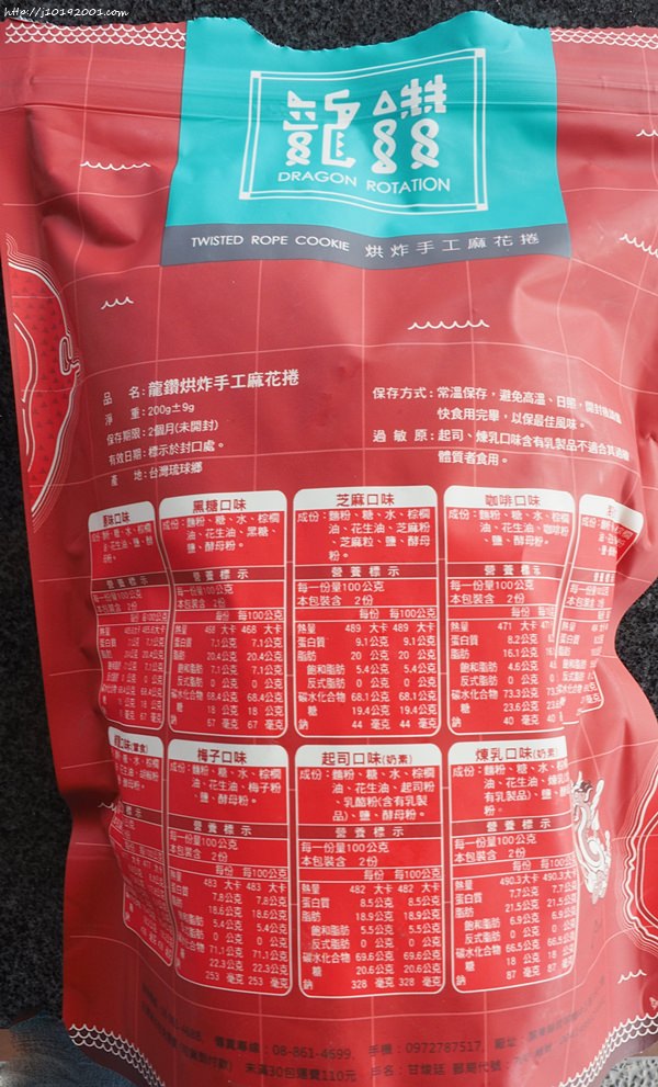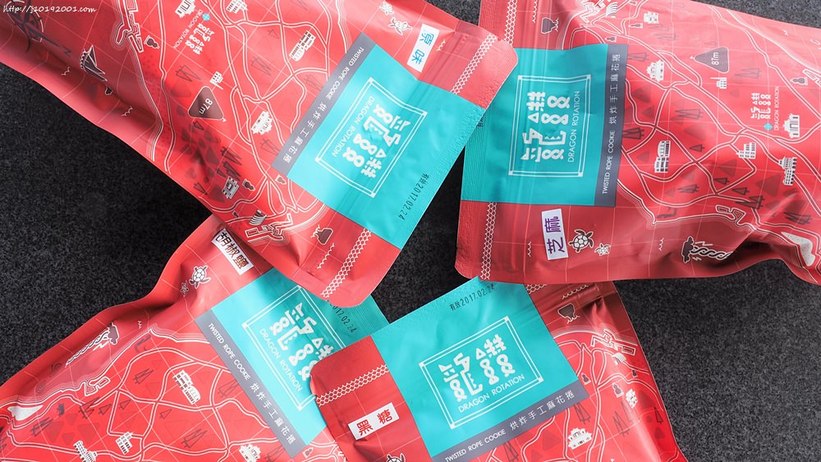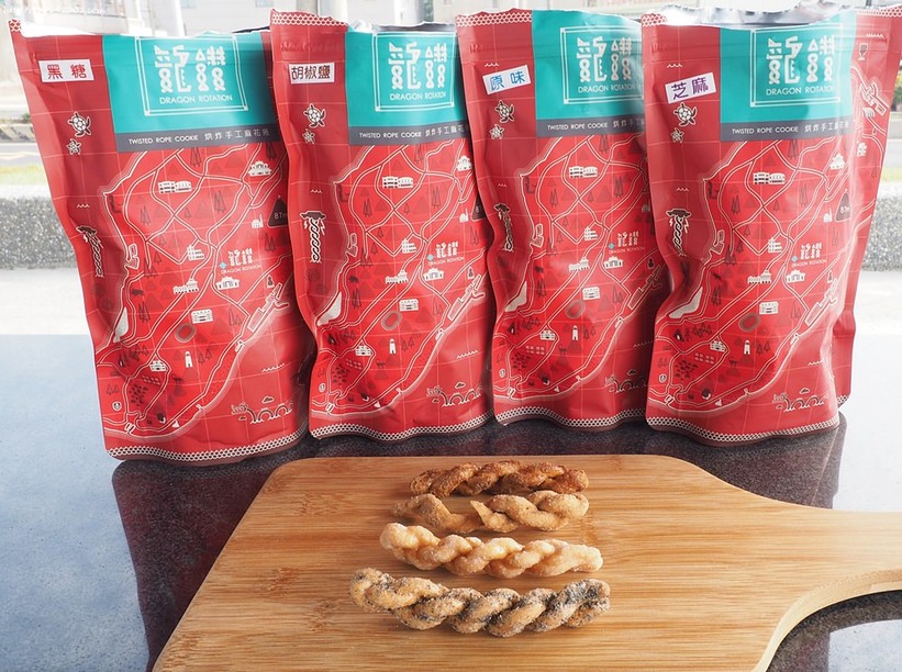 剛好於年末收到非常有過年氣氛的『龍鑽手工麻花捲』,外包裝很喜氣,上頭還有龍鑽在小琉球的大概位置。