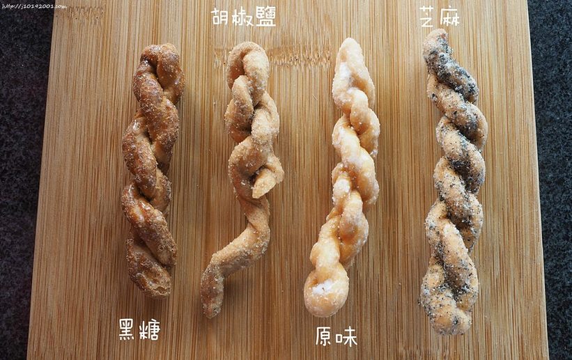 今天要介紹的這間龍鑽,他們家的麻花捲一共有9種口味,包含原味、黑糖、煉乳(奶素)、咖啡、胡椒鹽、海苔、梅子、芝麻、起司(奶素)。
