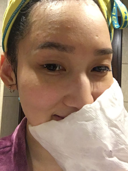 用單張衛生紙按壓全臉及手部,視情況用化妝水/純露或卸妝水再次擦拭全臉,最後再用洗面乳。