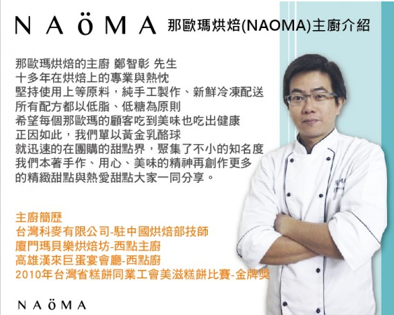 "NAOMA 那歐瑪烘焙"主廚 "鄭智彰"先生,是大有來頭的喔