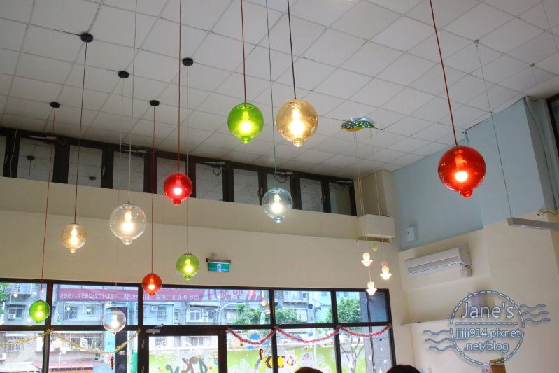 活潑色彩繽紛的燈飾,取代了一般的日光燈,